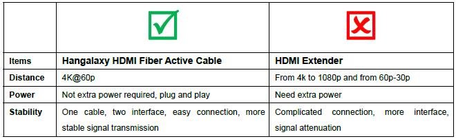 Now its Hangalaxy fiber optic HDMI cable shows up here. As matter of fact, the connection is also a very important part of AV program. Generally, people knows well HDMI copper cable, which connects different equipment and transmits the data. But HDMI cable has a big shortage, it can’t transfer more than 10 meters, and other companies can make 50m max, but it should use a signal booster. Even the distance connection can reach be longer, but the resolution will be attenuation. Let’s check the difference bellow.